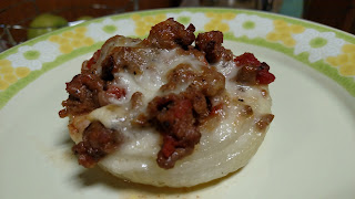 Next, spoon some of the beef mixture into each onion.